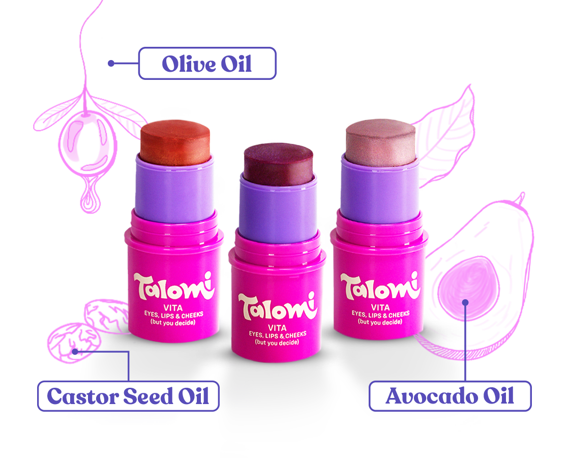Vita combines these plant-powered ingredients for safe, playful color on eyes, lips, and cheeks. Let her decide where creativity blooms!